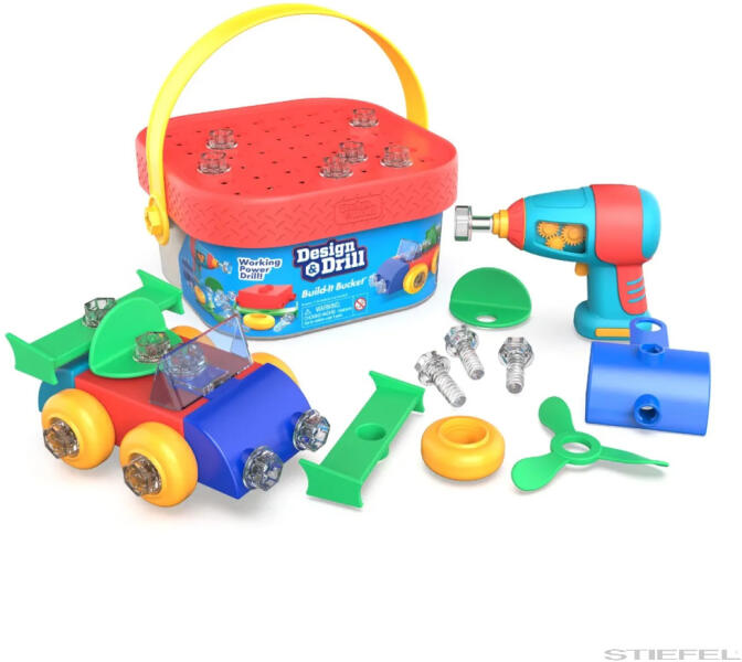 Tele van mindennel, amire egy fiatal mérnöknek szüksége van ahhoz, hogy egy valósághűen működő fúrógépet használjon egyszerű járműjátékok építéséhez, miközben gyakorolja a finommotoros készségeket.
