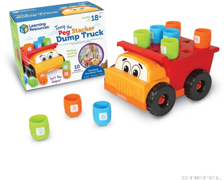 Ahogy gurítják Tony kerekeit vagy nyitják és zárják a felhajtható teherautó platóját, a gyerekek fantáziadús tanulási kalandok során színeket, formákat és számokat párosíthatnak.