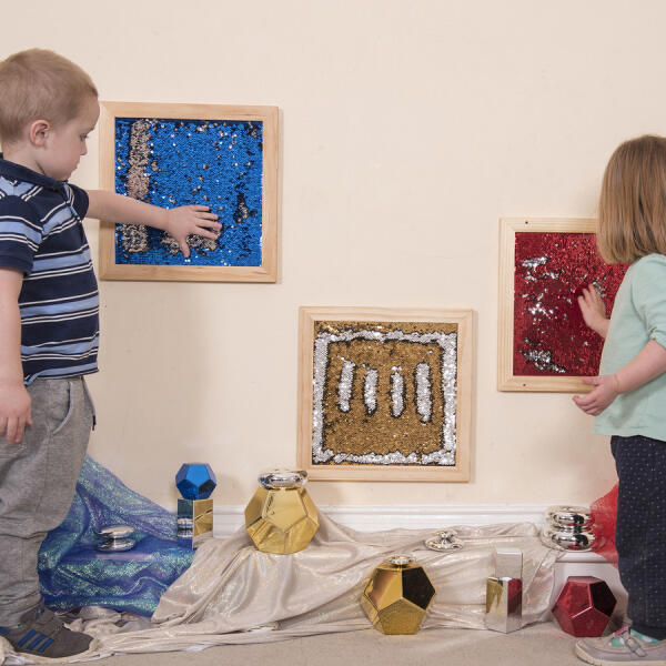 Ez a 3 darabos, flitteres keretszett egyszerre ösztönzi a gyerekek érzékszervi felfedezését, kreativitását és finommotoros készségeit. A színt váltó, simítható flitterek nemcsak vizuálisan lenyűgözők, hanem nyugtató hatásúak is – ideálisak szenzoros szobába vagy nyugalomra vágyó gyerekek számára.